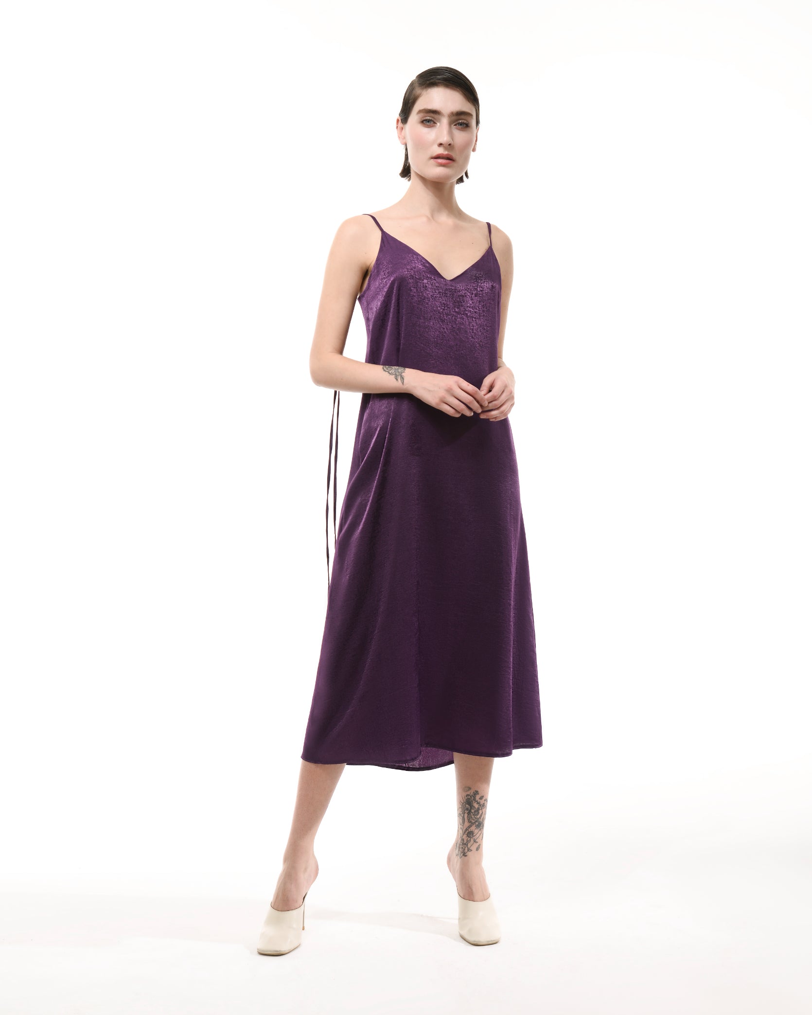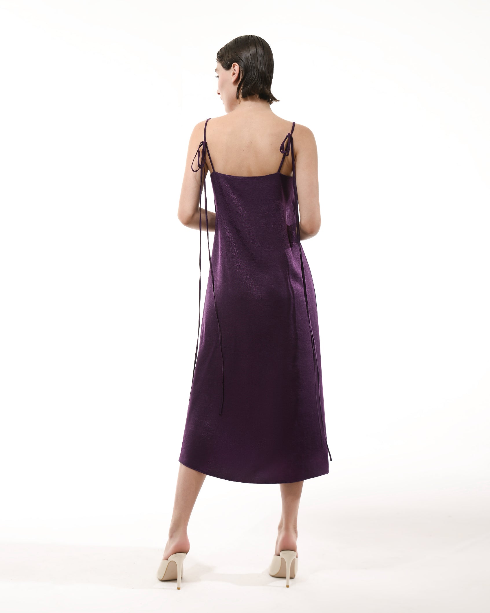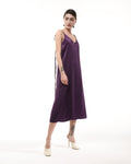 The purple midi dress is sophisticated, the sleeveless dress feels great on you and looks even better. The dress design is similar to a silk-satin gown with a deep-V neck. With adjustable straps, it is possible to change the style and sizing of the dress.