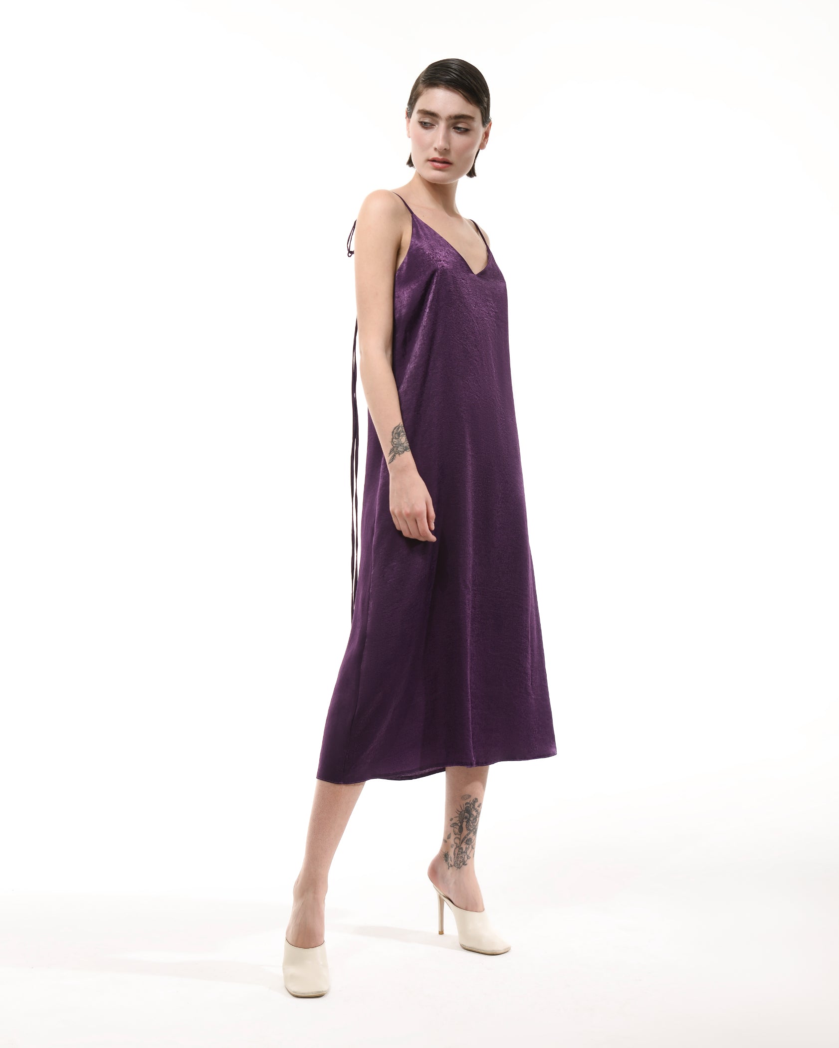 Purple silk slip sleeveless midi dress with a midi length for a bohemian and a classy evening, it can be worn for parties, night outs, bridesmaids and Bachelorette. The silk dress feels light and breathy with every move.