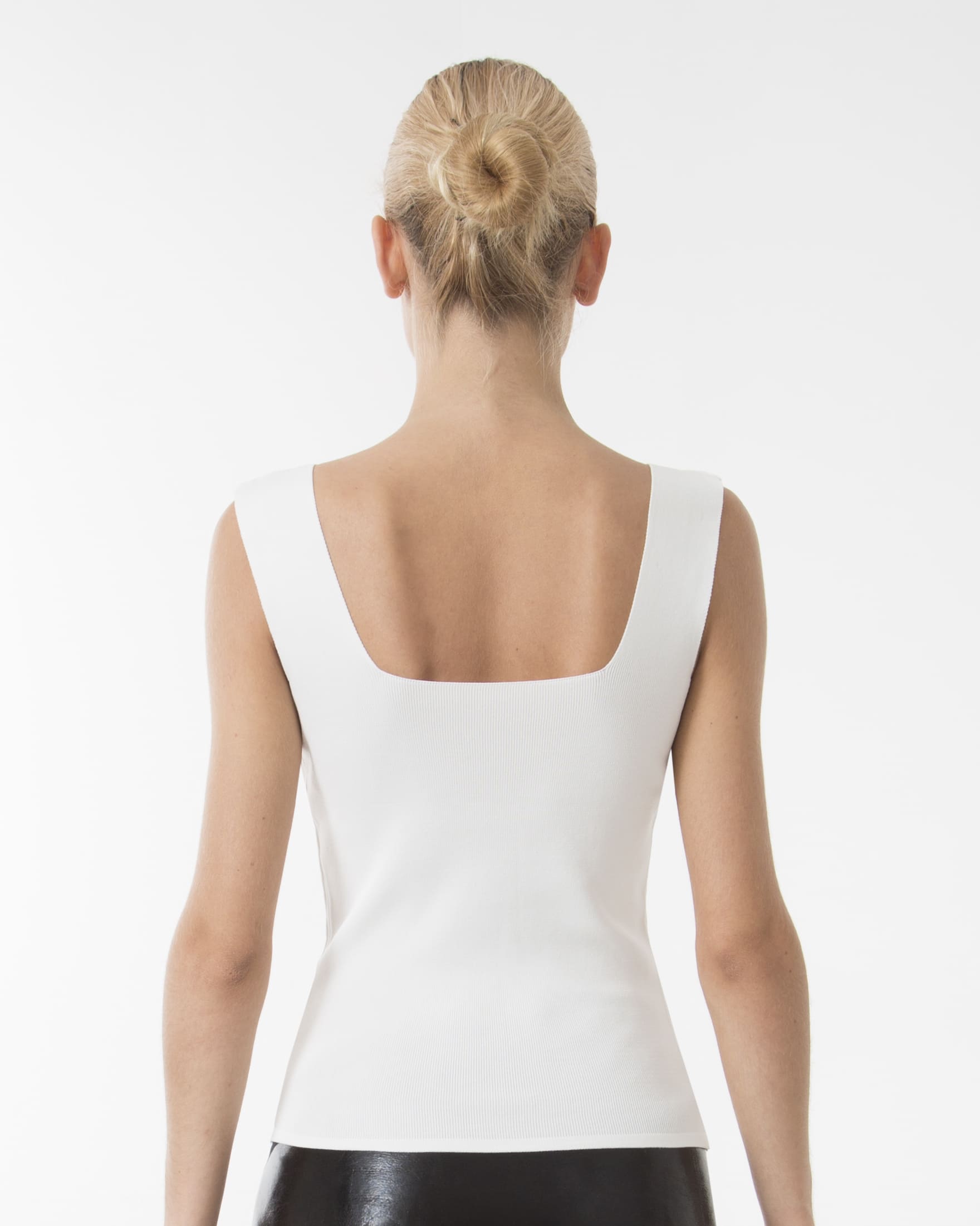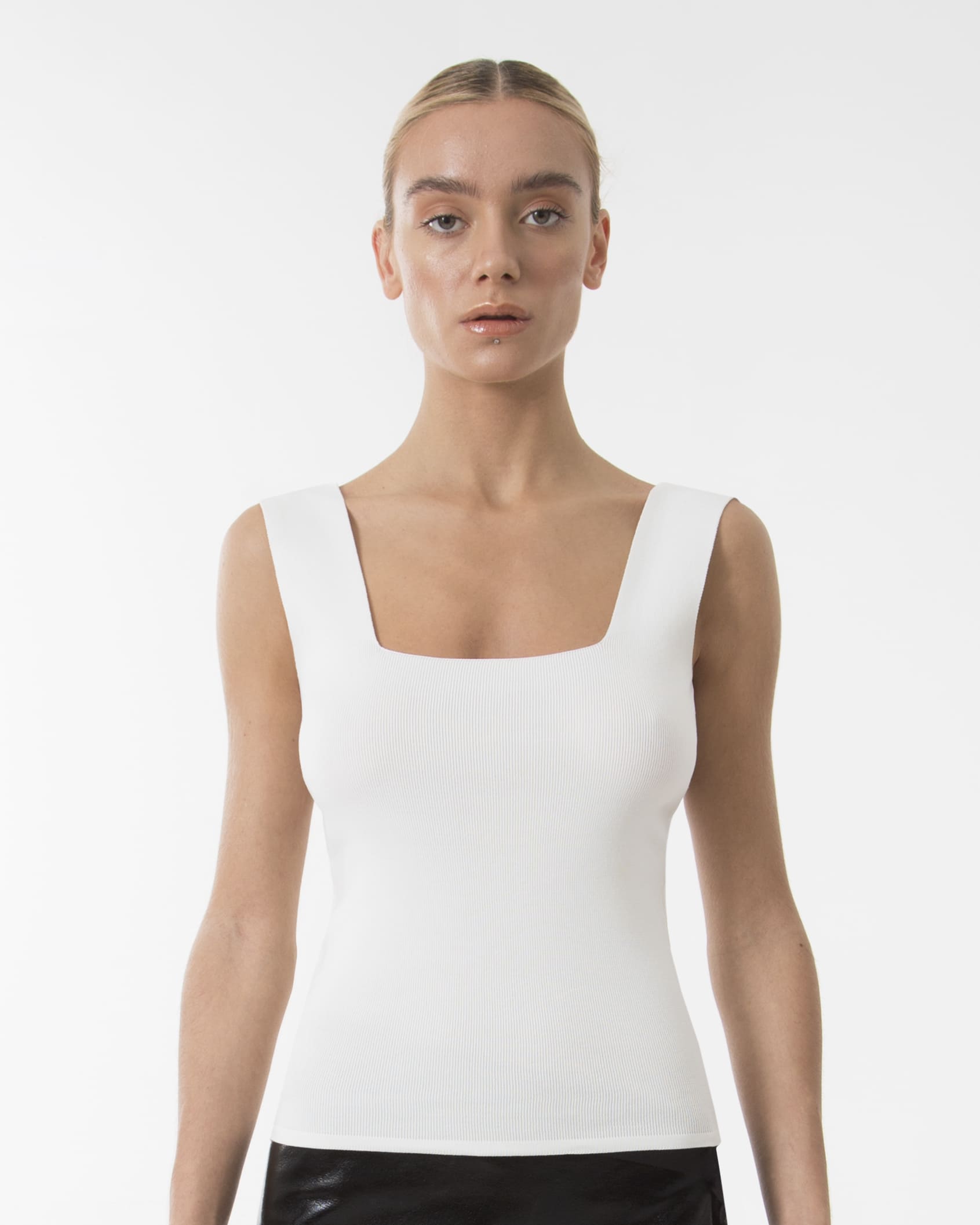 The sleeveless top blouse is made of stretchy, lightweight ribbed fabric and feels ultra-soft.