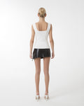 The white sleeveless top blouse with a close-to-body fit is perfect for a base layer when you want to pair it with your favorite jacket.